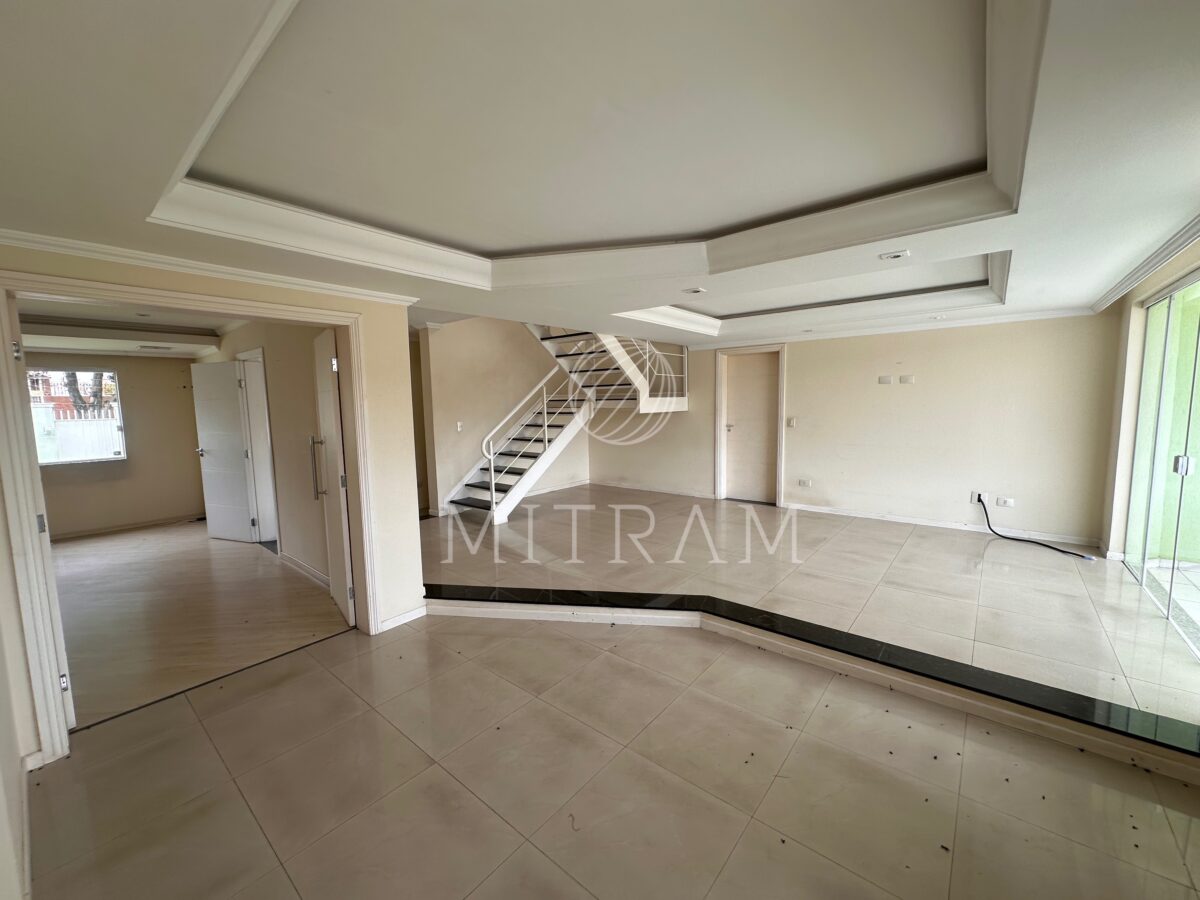 No pavimento inferior há piscina, garagem para três carros, churrasqueira integrada à área gourmet, depósito, banheiro com chuveiro e espaço já preparado para instalação de sauna. Localizada no bairro Ahú, próxima à OAB e com fácil acesso a todo o comércio e serviços da região.