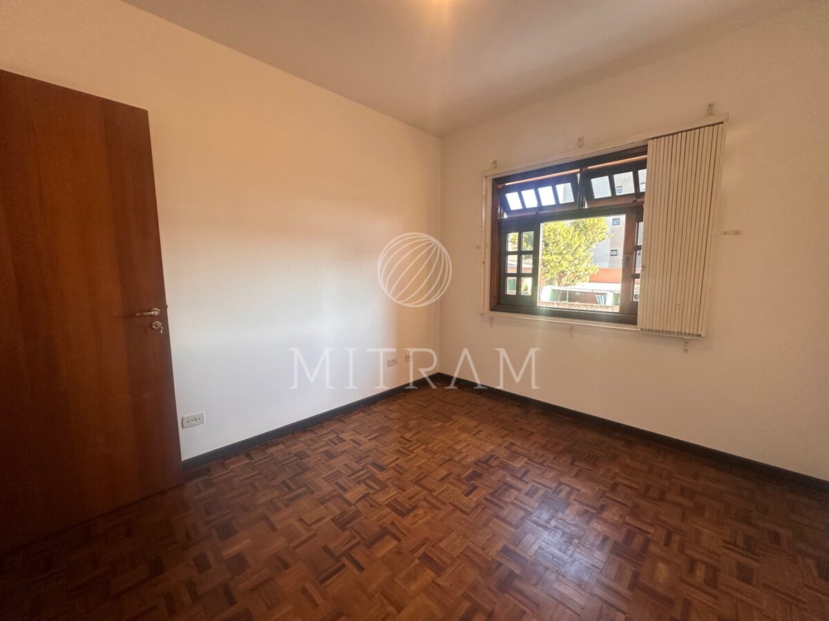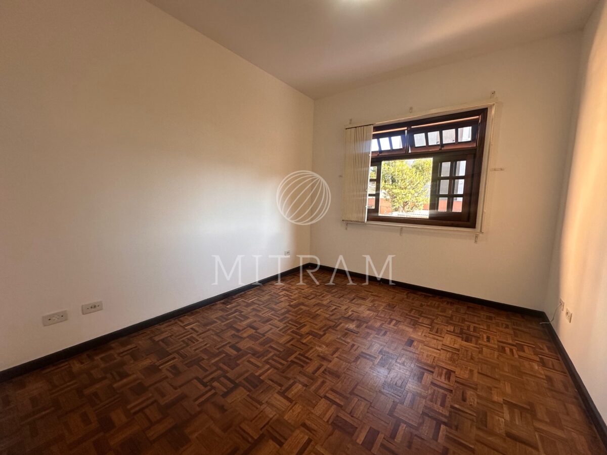No segundo pavimento, três quartos, sendo uma suíte com varanda, além de banheiro social.
