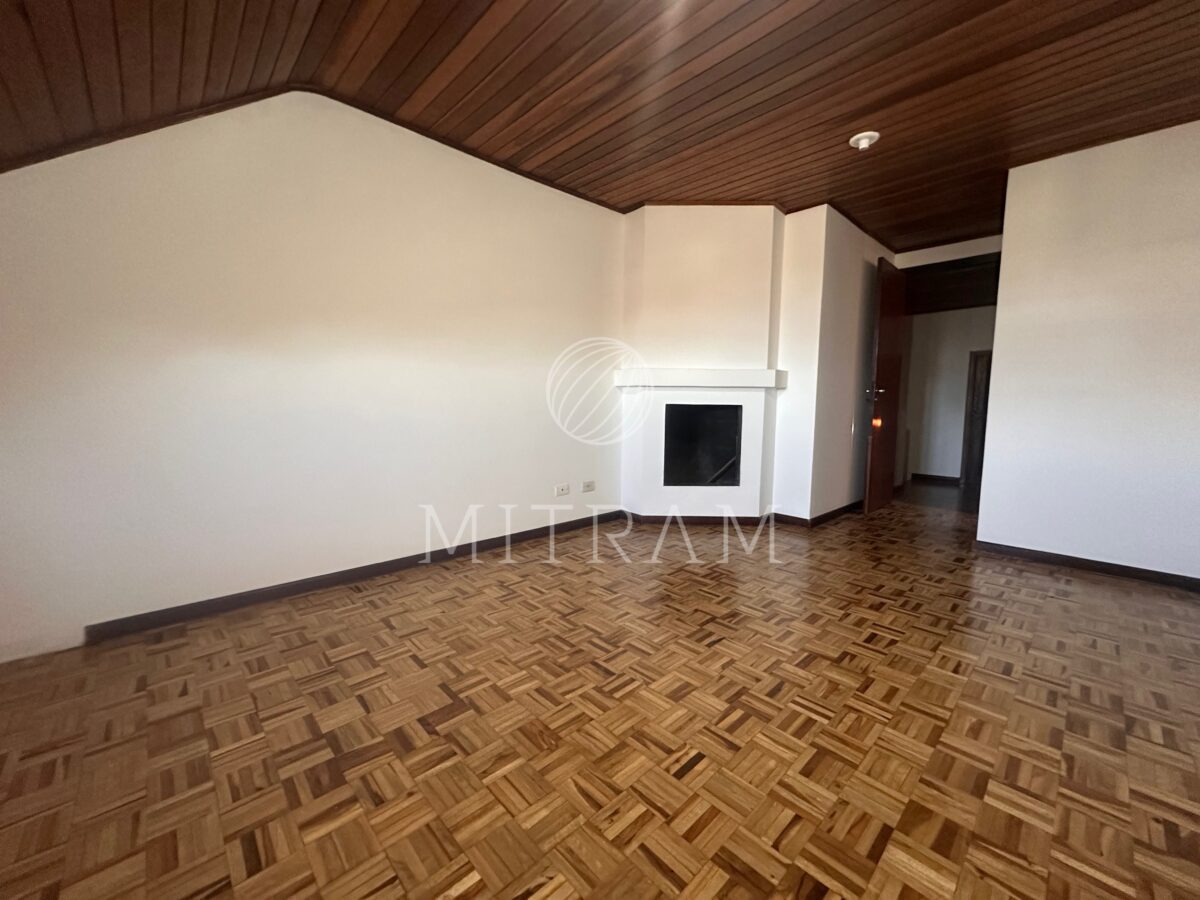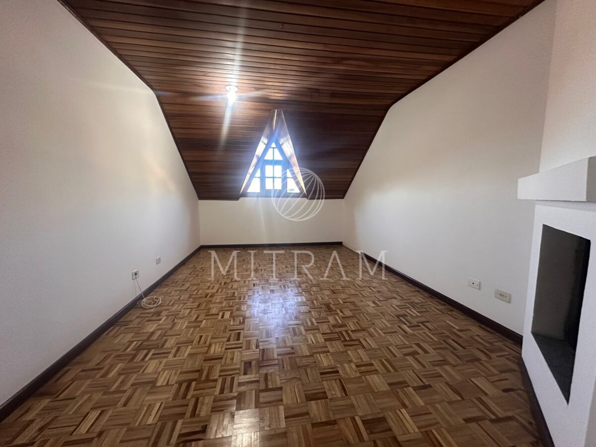 No terceiro pavimento, amplo ático com lareira e banheiro, perfeito para quarto extra ou área de convivência.