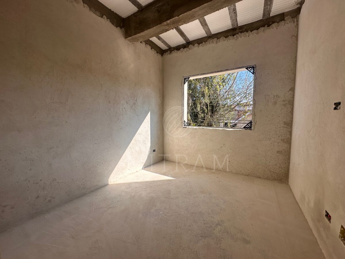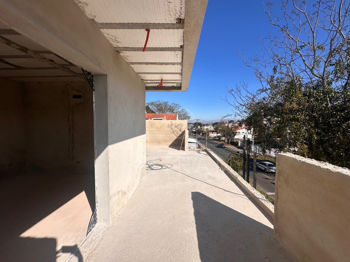 Três quartos no segundo pavimento, sendo uma suíte, além de banheiro social. Ático com espaço amplo para múltiplos usos e uma sala de TV ou escritório.